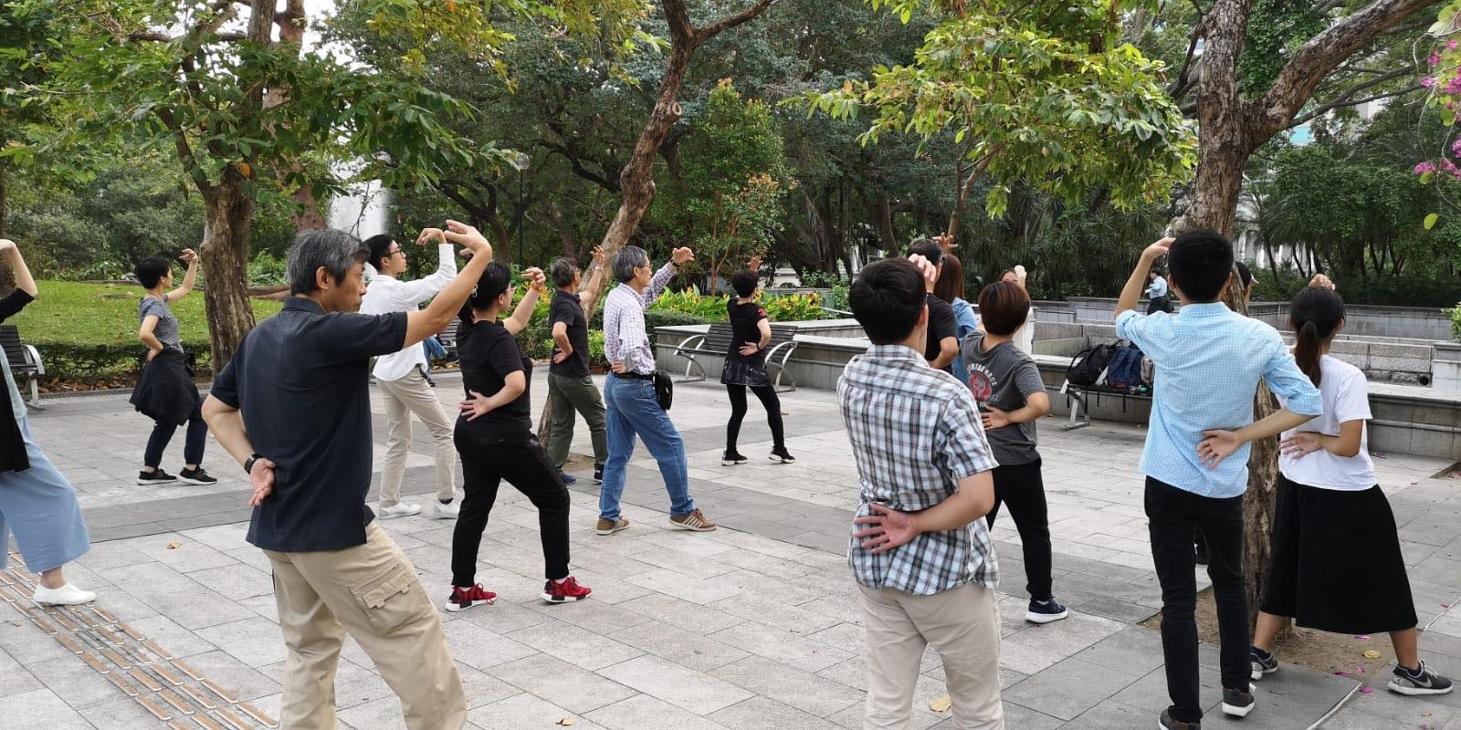 張建國醫師帶領教職員及學生於尖沙咀公園進行氣功鍛鍊