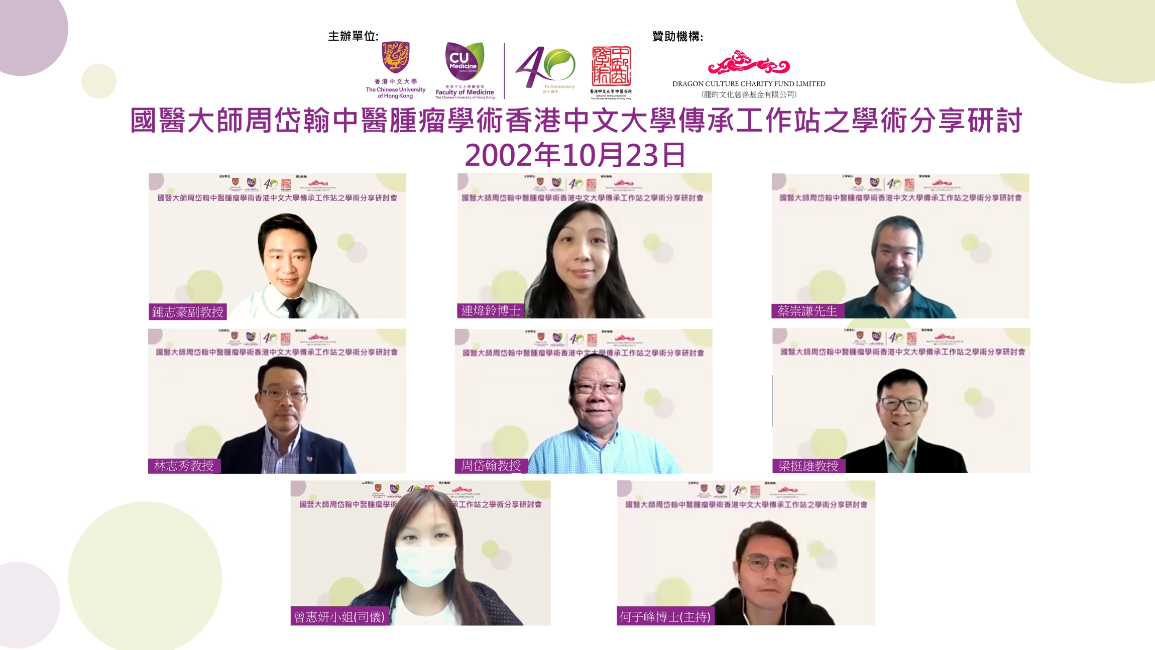 「國醫大師周岱翰中醫腫瘤學術香港中文大學傳承工作站之學術分享研討會」