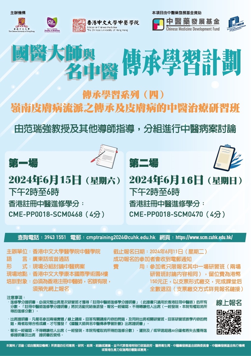 傳承學習系列(四)嶺南皮膚病流派之傳承及皮膚病的中醫治療講座及研習班